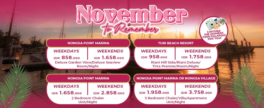 - Complimentary 2-way land transfer from Nongsapura to the resort